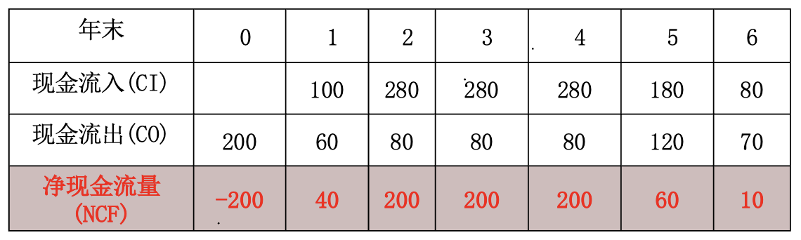 净现金流 NCF : 现金流入与现金流出之差,NCF=CI-CO