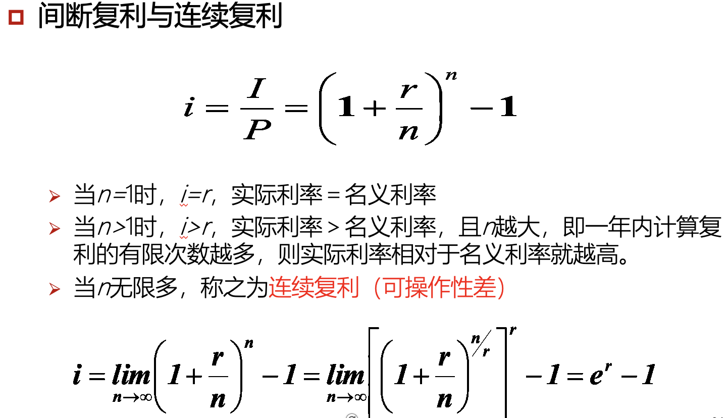 复利下很可能出现 名义利率 ≠ 实际利率 (受计息周期影响)