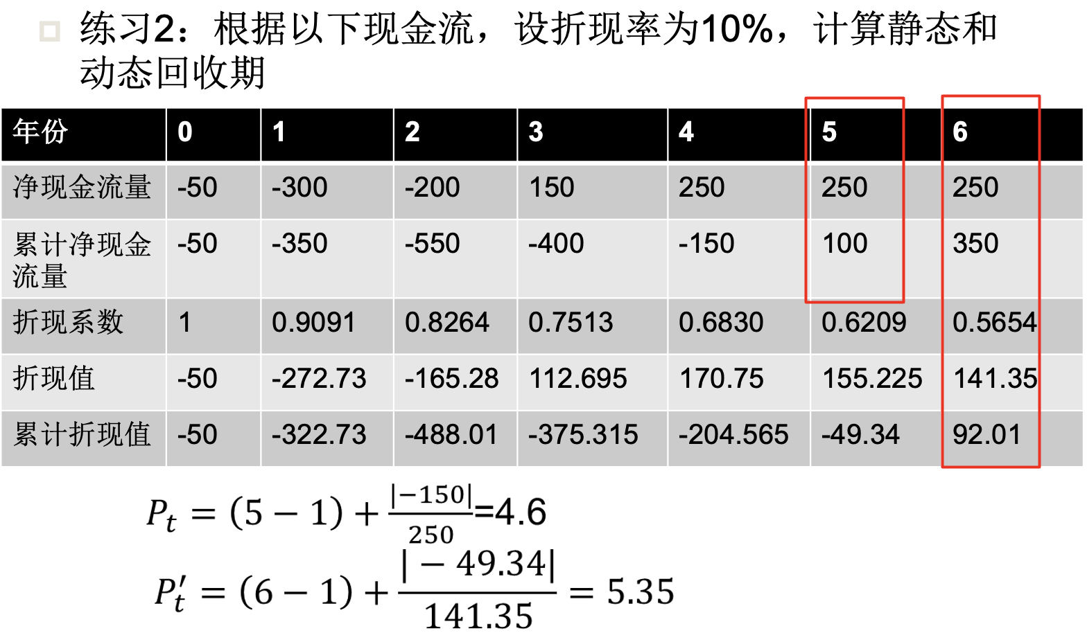 动态投资回收期