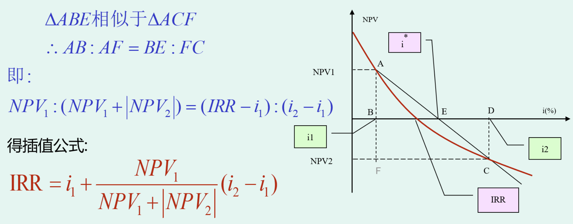 插值法计算 IRR 的近似值